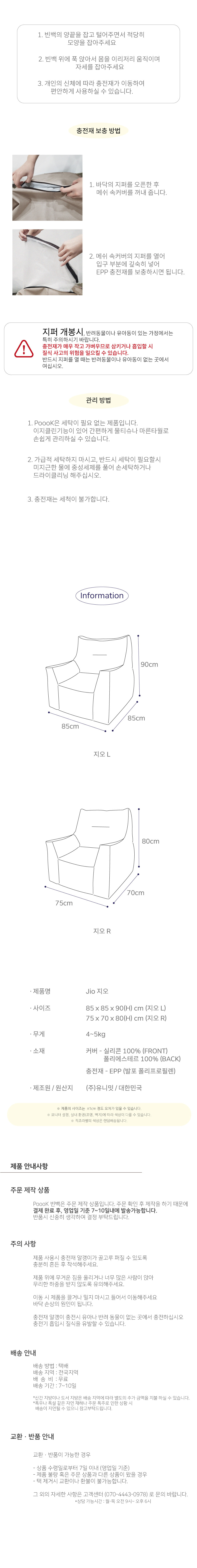 POOOK 지오 빈백 소파형 방수빈백 국내특허 패브릭